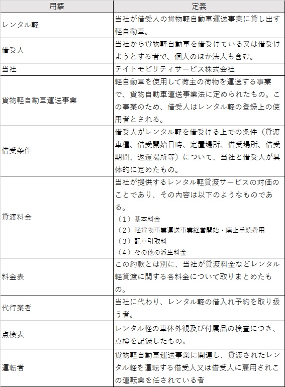 第2条 当社は、本約款の定めるところにより、貨物軽自動車運送事業に使用するための貸渡軽自動車